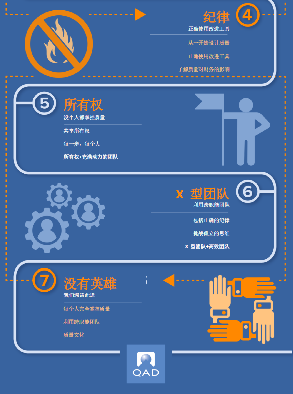 拥有质量文化的公司没有英雄。这是因为每个人都掌控着组织的质量,而领导层利用跨职能团队来解决问题,并不断提高所有相关人员的技能。很多组织都拥有擅长解决紧急和关键问题的人员,这些人员被视为英雄。但在拥有真正质量文化的公司中,大家齐心协力将问题扼杀在萌芽状态。所以,不需要英雄。