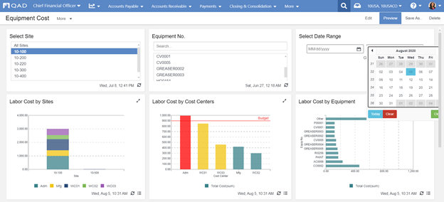 Todos os fabricantes devem encontrar maneiras de se adaptar e mudar suas condições internas em resposta às demandas dos clientes, restrições de orçamento e idade e utilização do equipamento. O centro de ação do custo de equipamentos fornece uma informação importante para que os fabricantes ajustem seus programas de manutenção, bem como suas políticas de atualização e substituição de equipamentos. O ERP adaptável da QAD fornece informações que ajudam as empresas a garantir que seus equipamentos funcionem com eficiência máxima a um custo razoável.